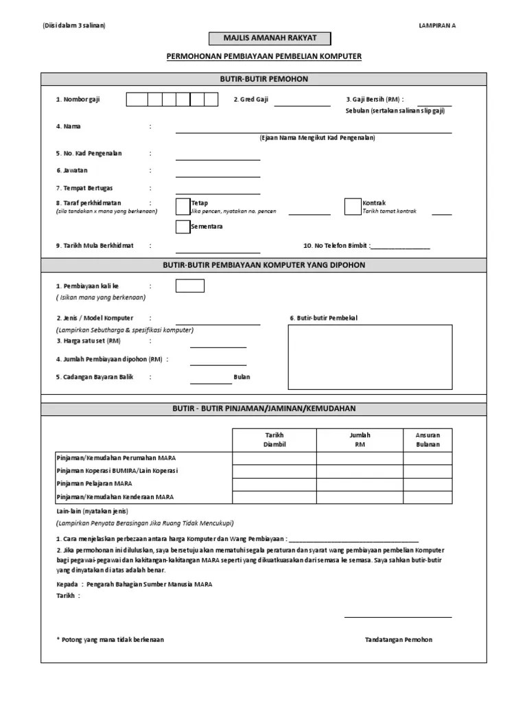1 salinan kad pengenalan dan penyata gaji penjamin atau. Penyata gaji bulanan tersebut hanya boleh digunakan untuk semakan dan rujukan pegawai berkenaan sahaja.